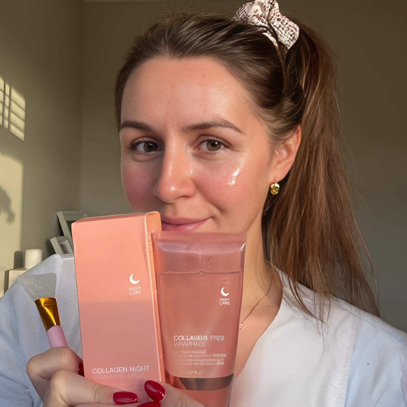Dankzij de krachtige collageenformule vormt het een voedende film die vocht vasthoudt, de huid diep verzorgt en helpt bij celvernieuwing. Het resultaat? Een soepele, stralende huid als je wakker wordt – zonder trekkerig gevoel of droge plekken.